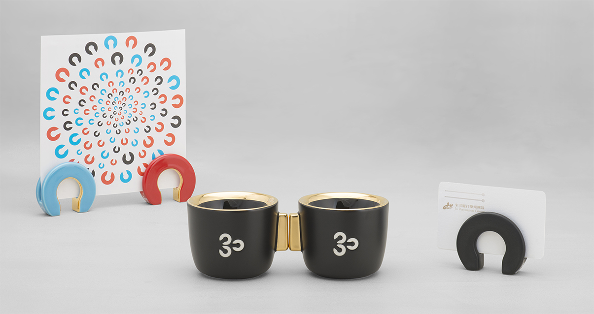 瓷林與朱宗慶打擊樂團首度跨界合作-朱團30精緻瓷品紀念禮盒。適逢樂團三十周年,瓷林以JPG30主視覺延伸發想的創意名片/相片架,名片架意涵著朱團是代表台灣行走於世界的一張名片;而雙層對杯相對並排時,就像一對「邦哥鼓」。