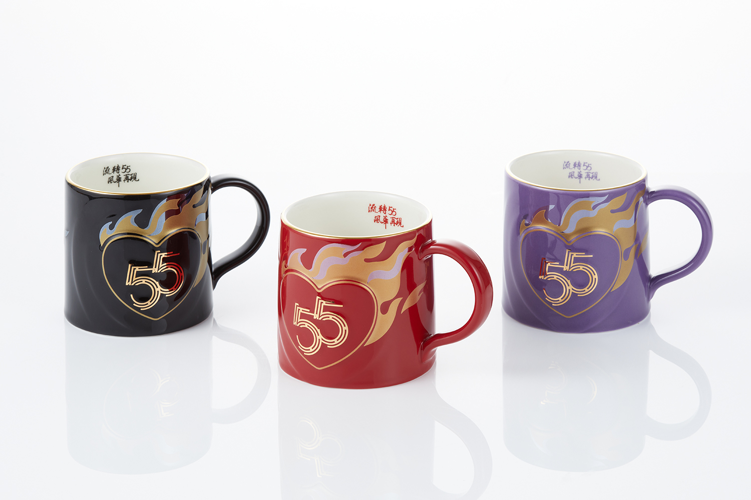 設計師將之融入紀念杯,心型圖案外火光燁燁,乘載55,點燃未來無限希望。