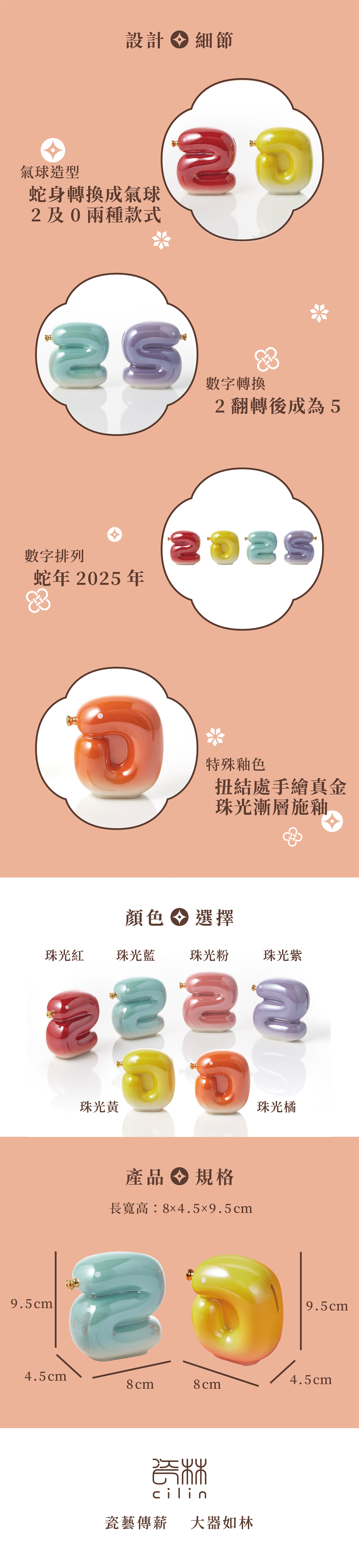 融合蛇的優雅與長條氣球的百變造型,將之轉化為數字,2與5巧妙共用,