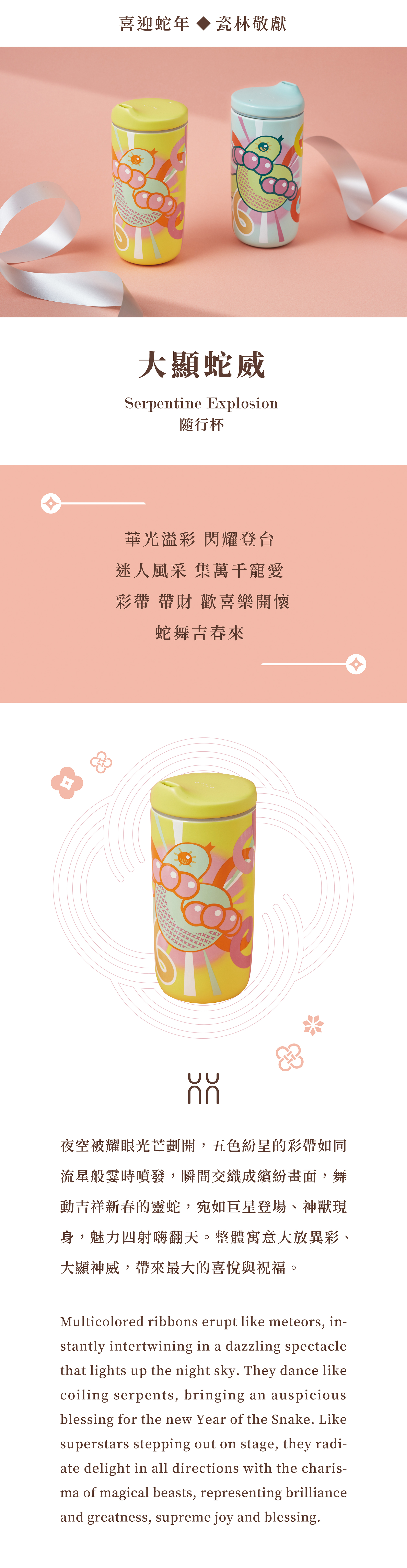 舞動吉祥新春的靈蛇,宛如巨星登場、神獸現身,魅力四射嗨翻天。整體寓意大放異彩、大顯神威,帶來最大的喜悅與祝福。