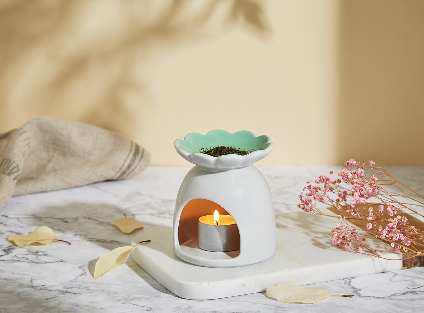 頂部精油盤盛開如大花(發),意喻點亮彩頭,鴻運當頭。