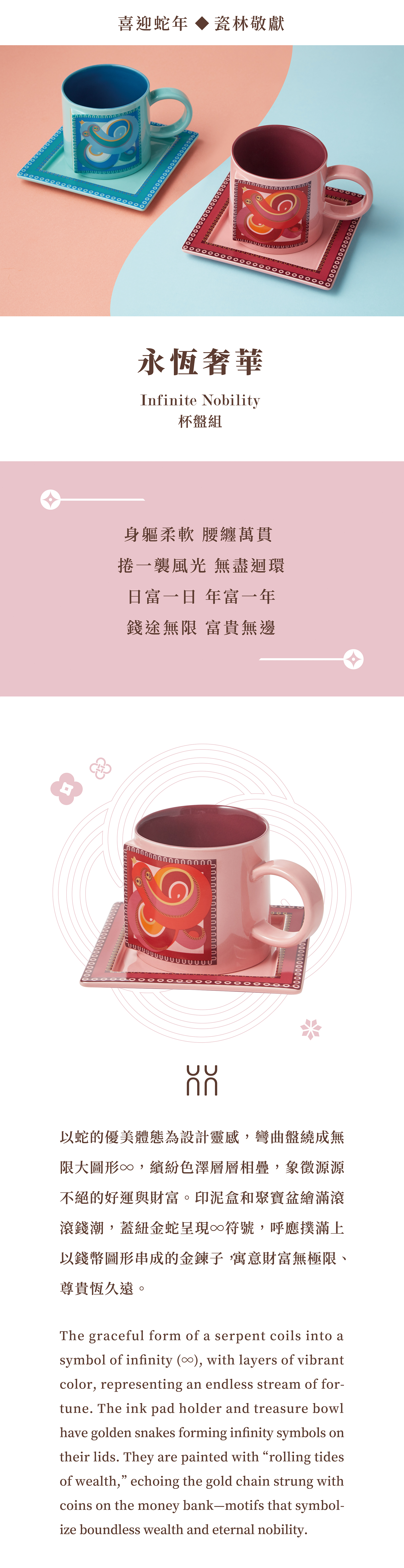 以蛇的優美體態為設計靈感,彎曲盤繞成無限大圖形∞,