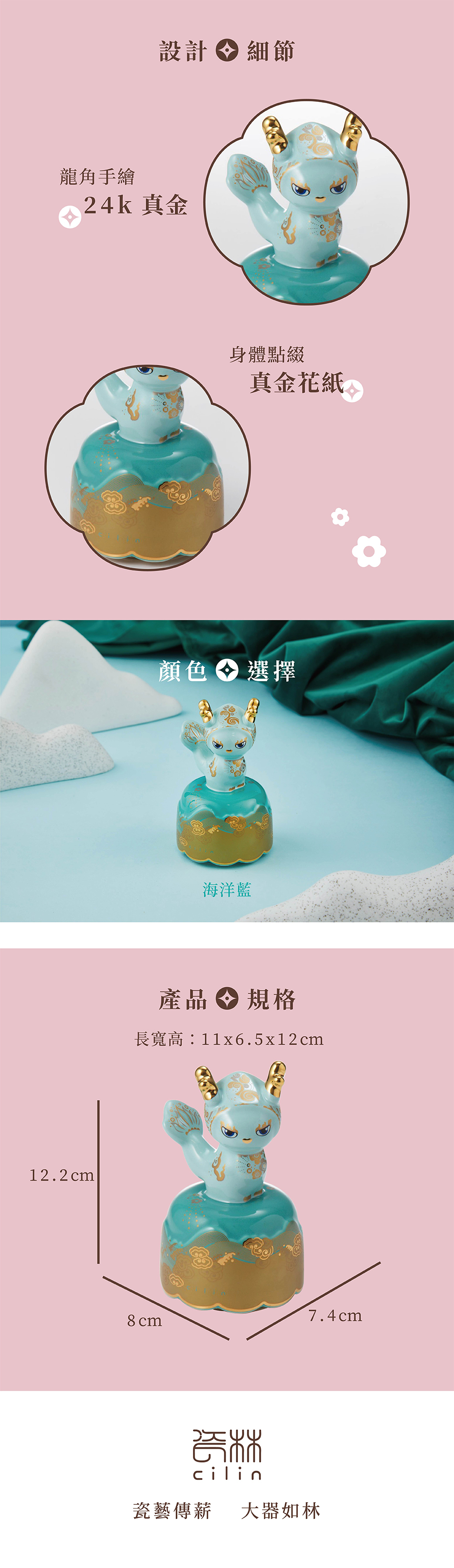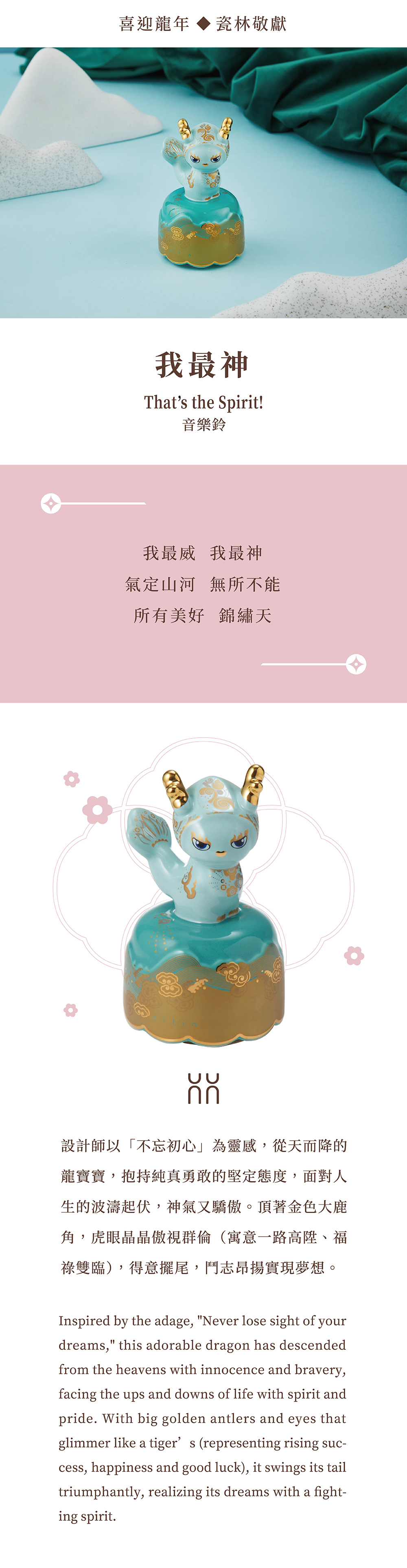 設計師以「不忘初心」為靈感,從天而降的龍寶寶,抱持純真勇敢的堅定態度,面對人生的波濤起伏,神氣又驕傲。
