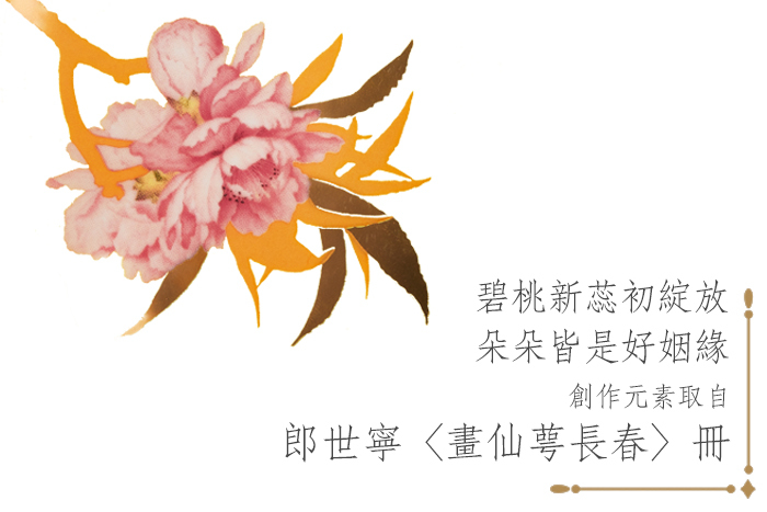 創作元素取自郎世寧〈畫仙萼長春〉冊,