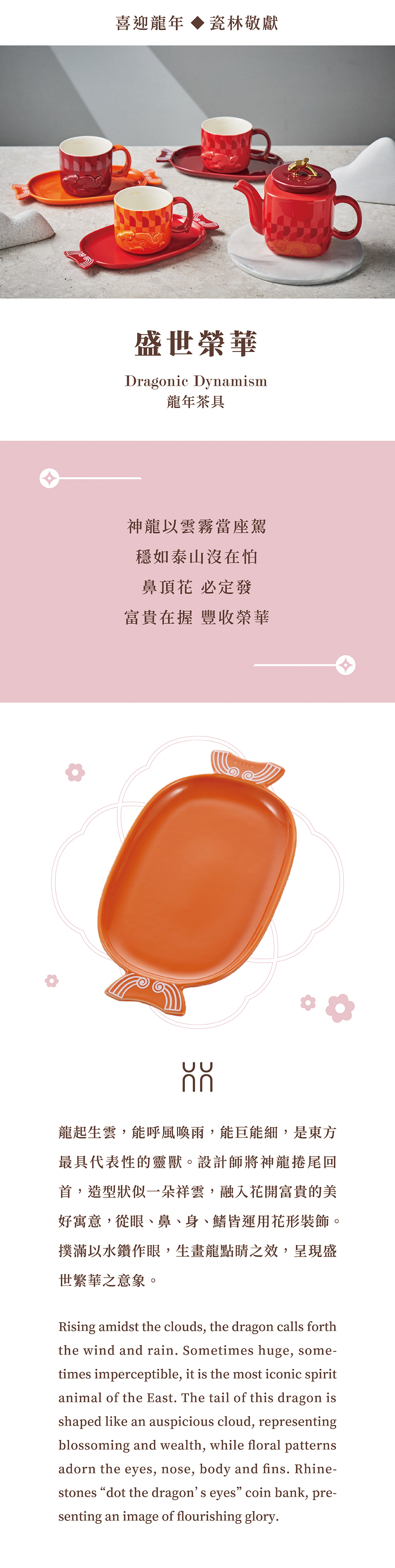 設計師將神龍捲尾回首,造型狀似一朵祥雲,融入花開富貴的美好寓意,