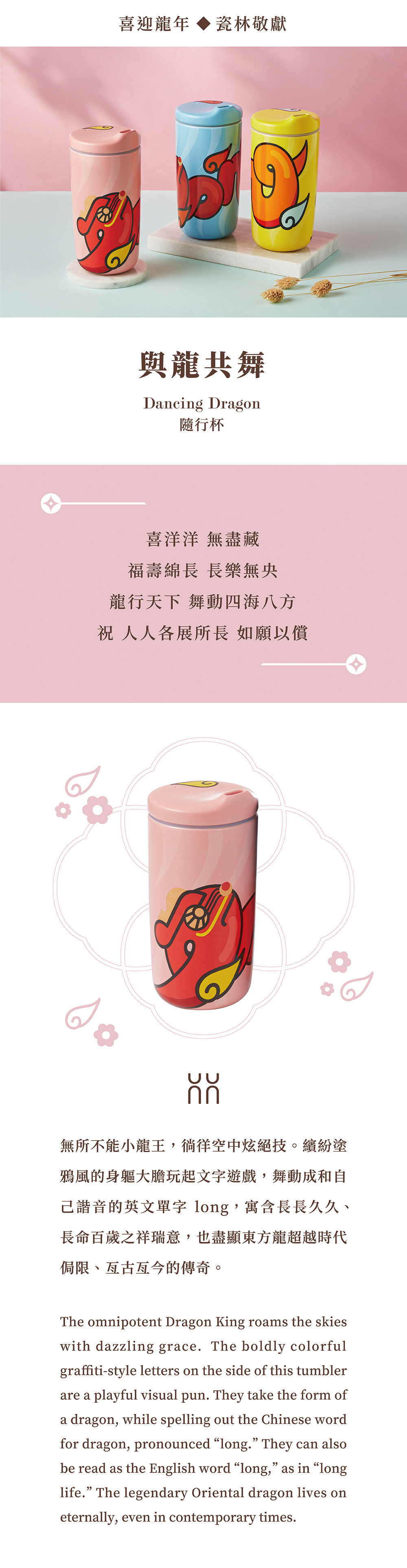 杯身圖樣Long音類似"龍",以街頭塗鴉的圖像化方式呈現。